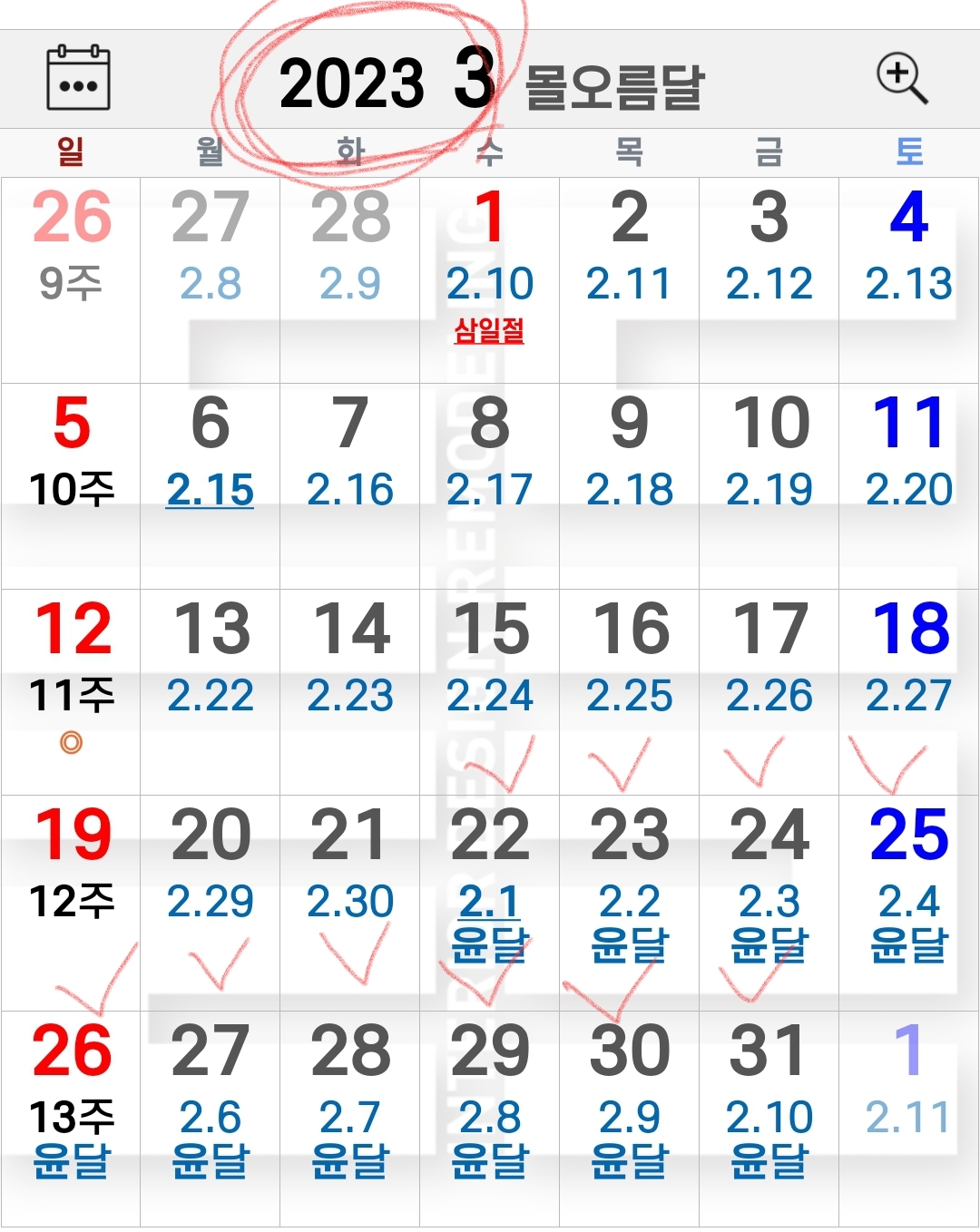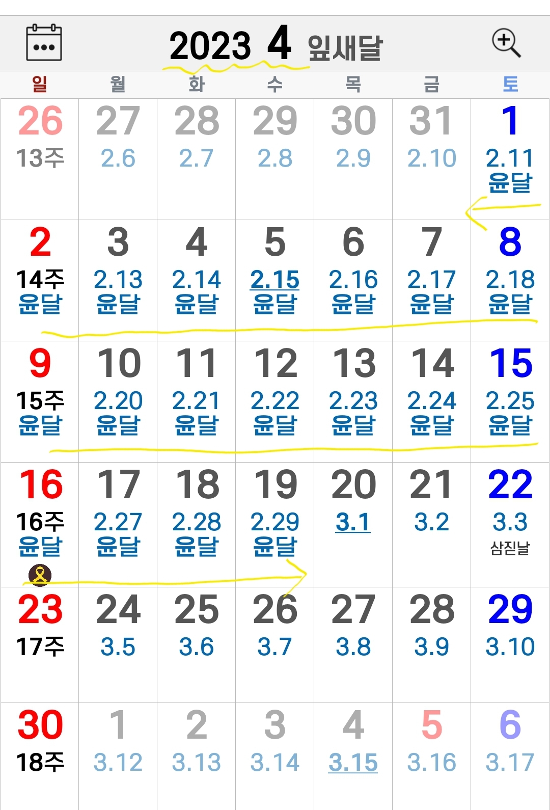2023년은 윤달이  있는해 입니다. 음력에서 평년의 12개월보다 1개월 더 보태진 달이죠.