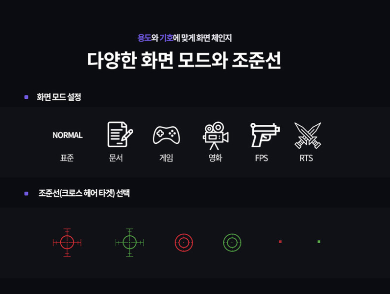 용도와 기호에 맞게 화면체인지 6가지 화면 모드와조준선까지,쉽게 우위를 점할 수 있고 스피커가 내장되어 있어 별도의 음향기긱 없이 사운드를 즐길 수 있다. IPTV 셋탑박스도 연결이 가능하다라고 합니다.