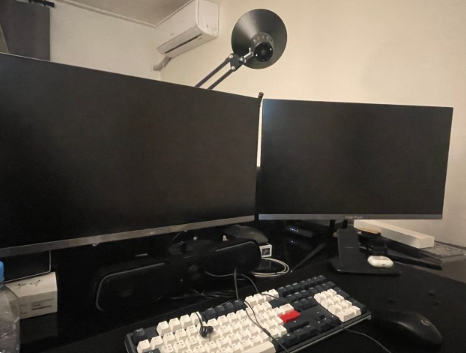 딱 하나 아쉬운건, 두개의 모니터가 같은 위치에 점이 있어요. 아마 공정상 뭔가로 인해 결점이 생긴 거 같은데, 크게 거슬리지 않아 그대로 쓰려고 합니다.