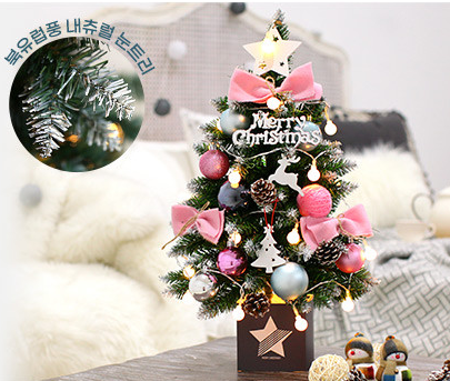 크리스마스트리 작은공간제춤 추천 프렌치피오니는 화이트 우드장시과 핑크리본.하늘색 파스텔 볼장식이 귀엽고 사랑스러운 느낌의 미니트리입니다.레드컬러와는 좀 다른 느낌이죠? 강한게 싫으신 분들은 핑크 컬러 괞찮을것 같아요. 웜등전구와 리모콘 사양모투 위의트리와 같아요.