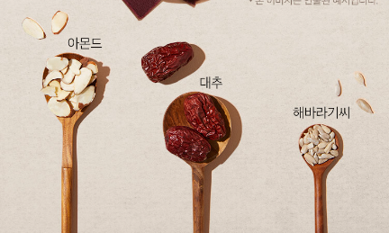 위에 올라간 고명들 아몬드. 대추. 해바라기씨