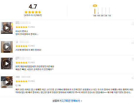 상품후기를 안 볼 수 없죠 2,780개의 후기가 달려있어요.
