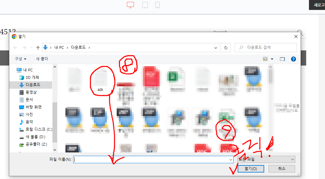 8. 1번에서 받은 ads 파일을 찾아 열기버튼을 누른다.
