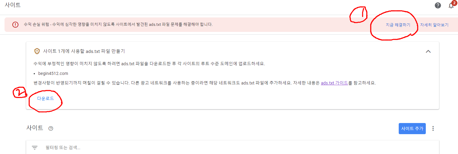 애드센스수익손실위험 ads.txt 파일 문제 해결 방법 나도 따라 했다.
