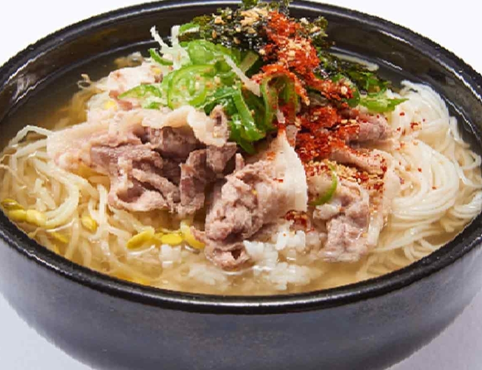 여섯 번째, 청주국수맛집에는 밥메뉴로 멸고국밥이 있습니다. (멸치육수+돼지수육) 매콤, 멸치육수에 콩나물, 국내산 돼지고기 수육이 들어간 해장용 국밥입니다.