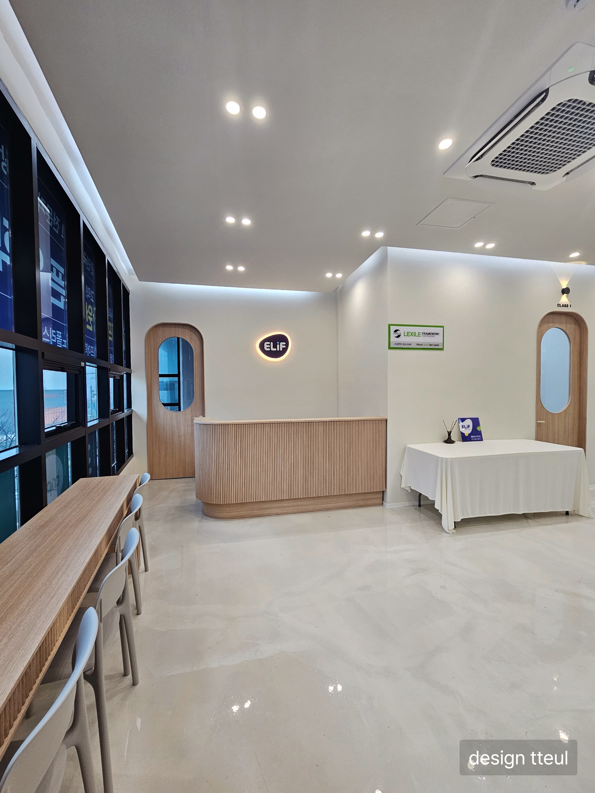 이번에 저희 디자인 뜰이 청주 송절동에 위치한 엘리프 어학원의 인테리어를 온전히 빛나게 잘 마무리했어요.